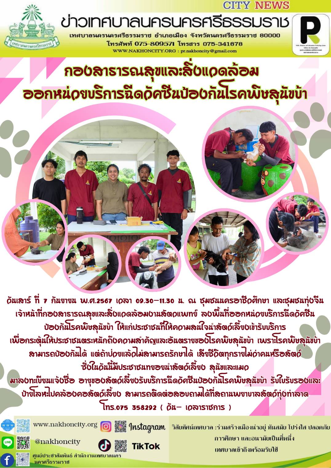 เจ้าหน้าที่กองสาธารณสุขและสิ่งแวดล้อมงานสัตวแพทย์ ลงพื้นที่ออกหน่วยบริการฉีดวัคซีนป้องกันโรคพิษสุนัขบ้า |