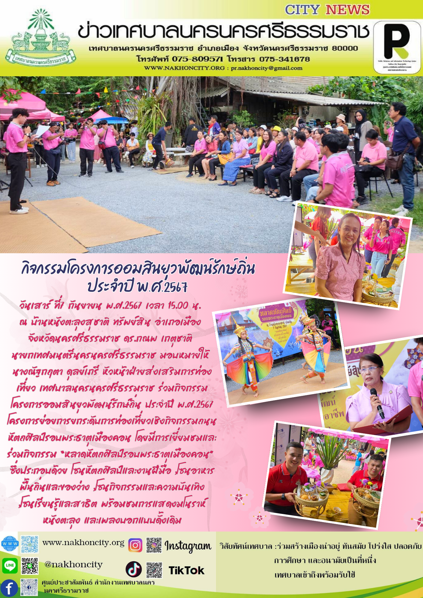 นางณัฐกฤตา ดุลย์เภรี หัวหน้าฝ่ายส่งเสริมการท่องเที่ยว เทศบาลนครนครศรีธรรมราช ร่วมกิจกรรมโครงการออมสินยุวพัฒน์รักษ์ถิ่น ประจำปี พ.ศ.2567 |