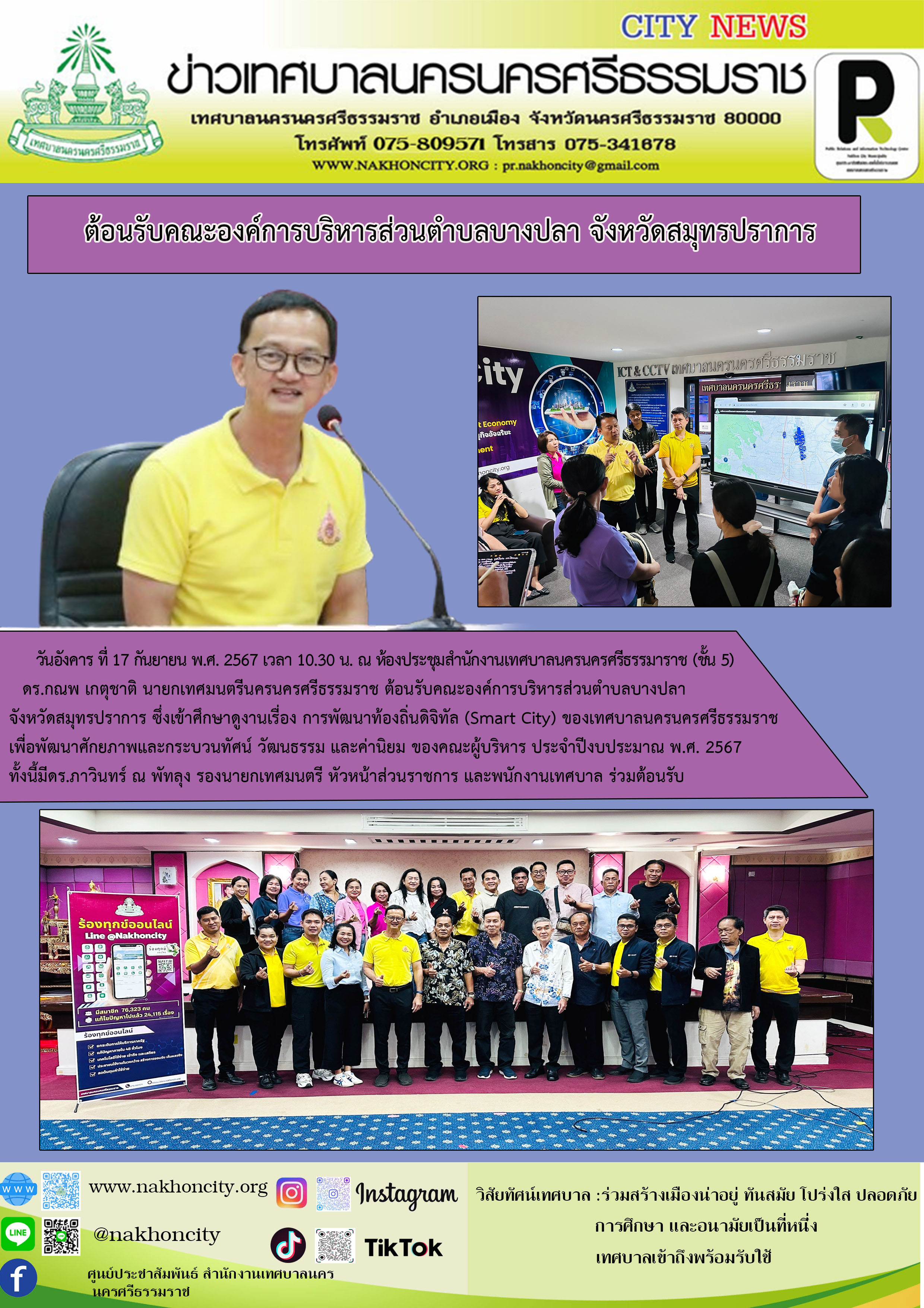 นายกเทศมนตรีนครนครศรีธรรมราชต้อนรับคณะองค์การบริหารส่วนตำบลบางปลา จังหวัดสมุทรปราการ ซึ่งเข้าศึกษาดูงานเรื่อง การพัฒนาท้องถิ่นดิจิทัล (Smart City) |