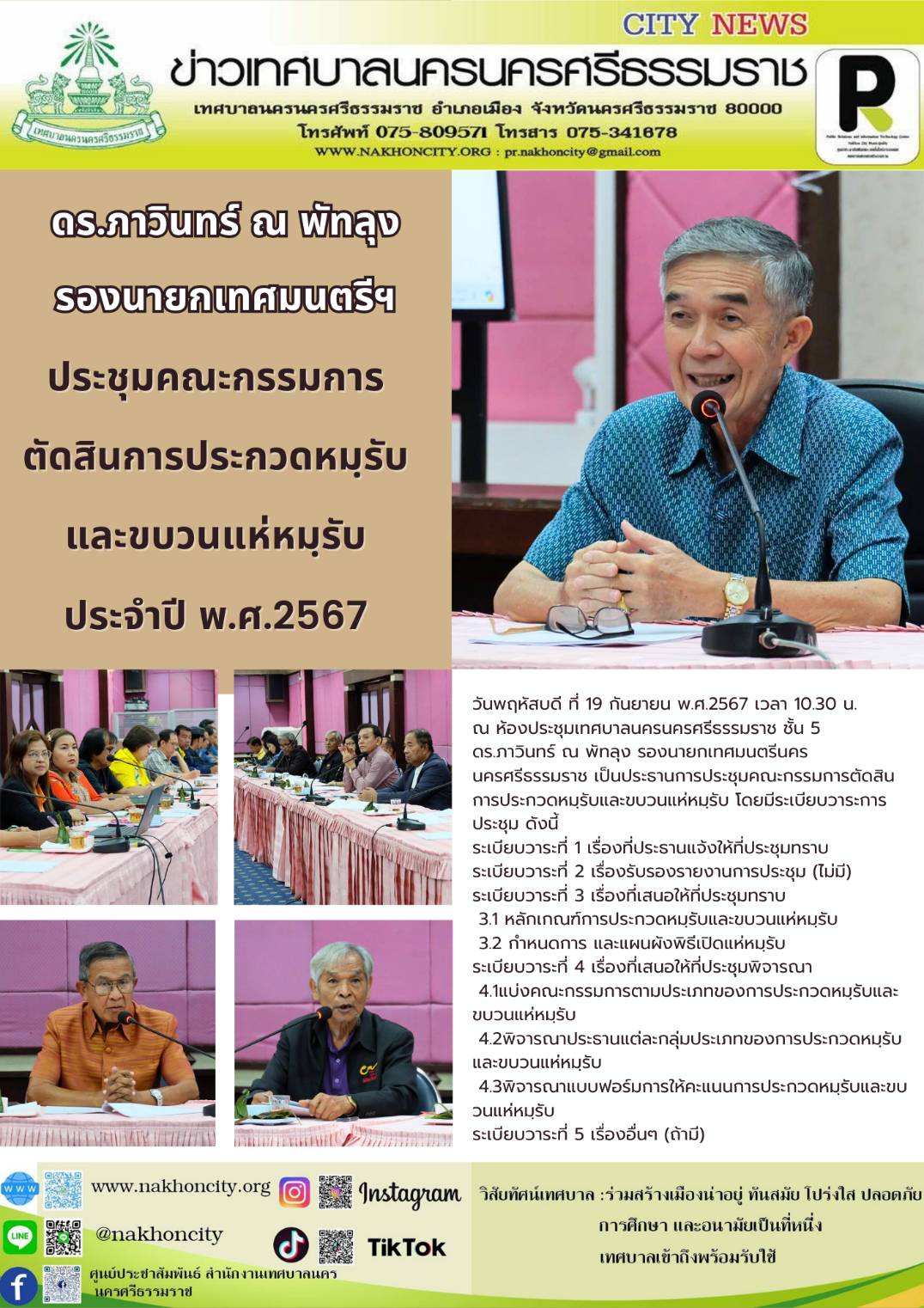 ดร.ภาวินทร์ ณ พัทลุง รองนายกเทศมนตรีนครนครศรีธรรมราช เป็นประธานการประชุมคณะกรรมการตัดสินการประกวดหมฺรับและขบวนแห่หมฺรับ |