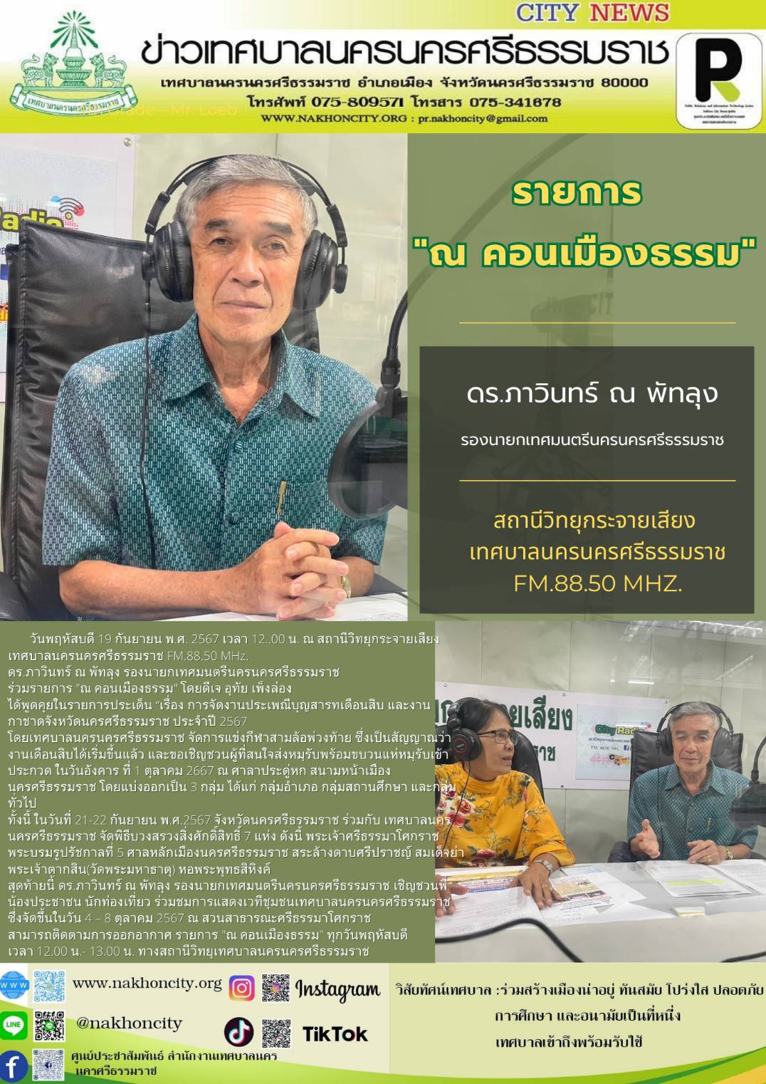 ดร.ภาวินทร์ ณ พัทลุง รองนายกเทศมนตรีนครนครศรีธรรมราช ร่วมรายการ "ณ คอนเมืองธรรม" โดยดีเจ อุทัย เพ็งล่อง |