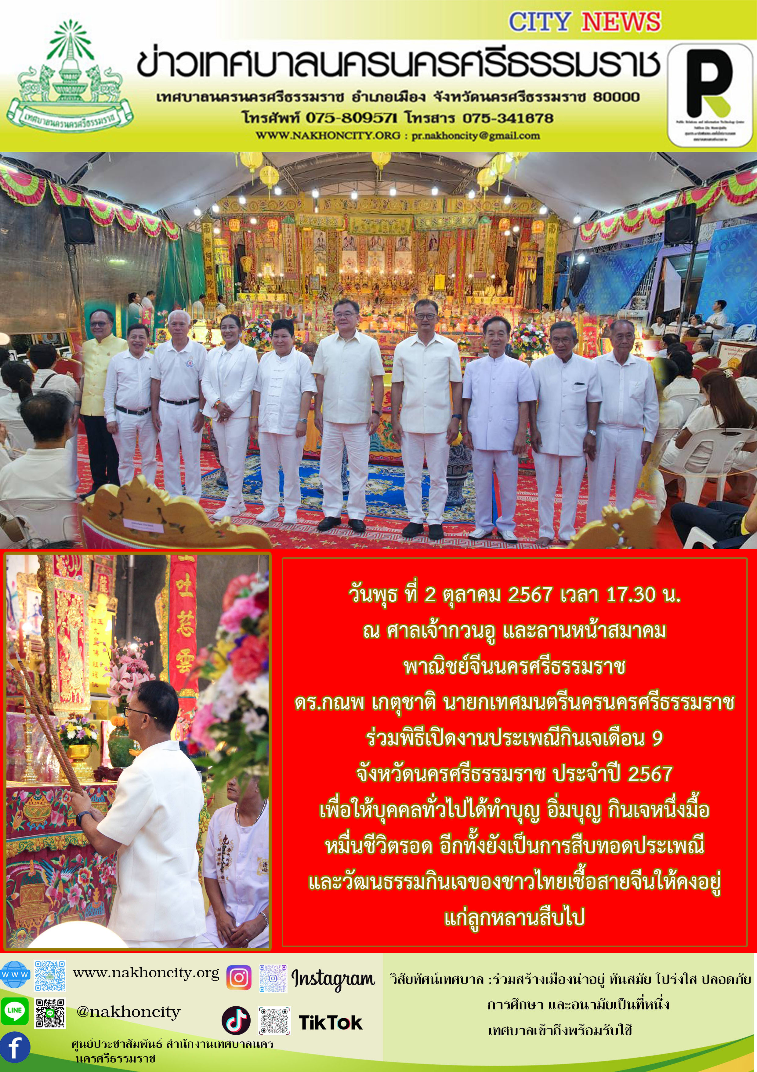 นายกเทศมนตรีนครนครศรีธรรมราช ร่วมพิธีเปิดงานประเพณีกินเจเดือน 9 จังหวัดนครศรีธรรมราช ประจำปี 2567 |