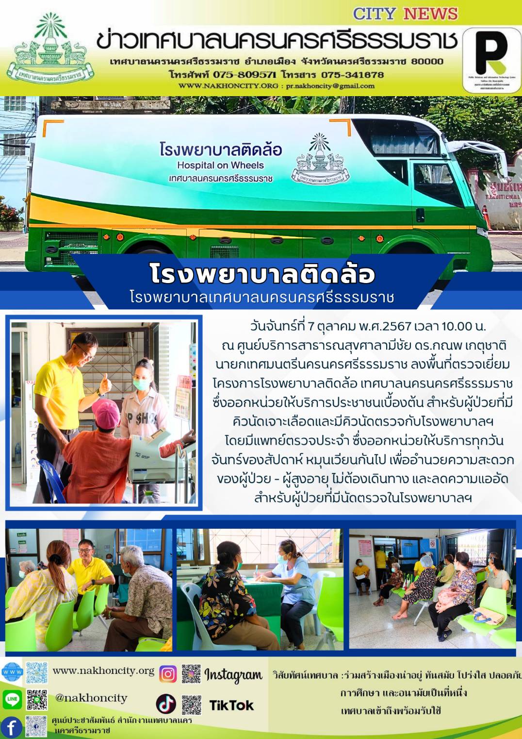 ดร.กณพ เกตุชาติ นายกเทศมนตรีนครนครศรีธรรมราช ลงพื้นที่ตรวจเยี่ยมโครงการโรงพยาบาลติดล้อ เทศบาลนครนครศรีธรรมราช |