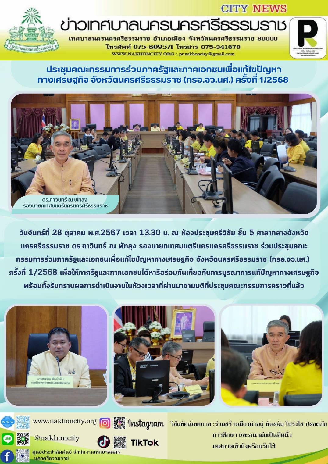 ดร.ภาวินทร์ ณ พัทลุง รองนายกเทศมนตรีนครนครศรีธรรมราช ร่วมประชุมคณะกรรมการร่วมภาครัฐและเอกชนเพื่อแก้ไขปัญหาทางเศรษฐกิจ จังหวัดนครศรีธรรมราช (กรอ.จว.นศ.) |
