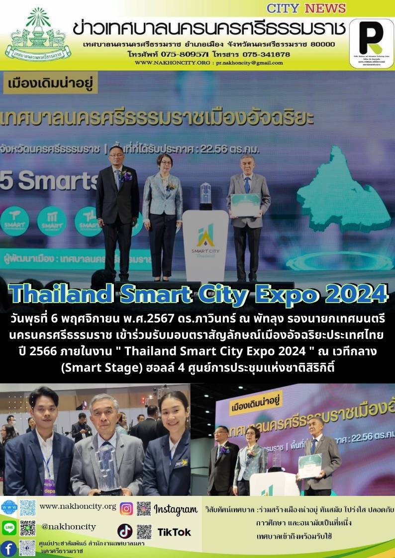 วันพุธที่ 6 พฤศจิกายน พ.ศ.2567 ดร.ภาวินทร์ ณ พัทลุง รองนายกเทศมนตรีนครนครศรีธรรมราช เข้าร่วมรับมอบตราสัญลักษณ์เมืองอัจฉริยะประเทศไทย ปี 2566 ภายในงาน " Thailand Smart City Expo 2024 " ณ เวทีกลาง (Smart Stage) ฮอลล์ 4 ศูนย์การประชุมแห่งชาติสิริกิติ์ |