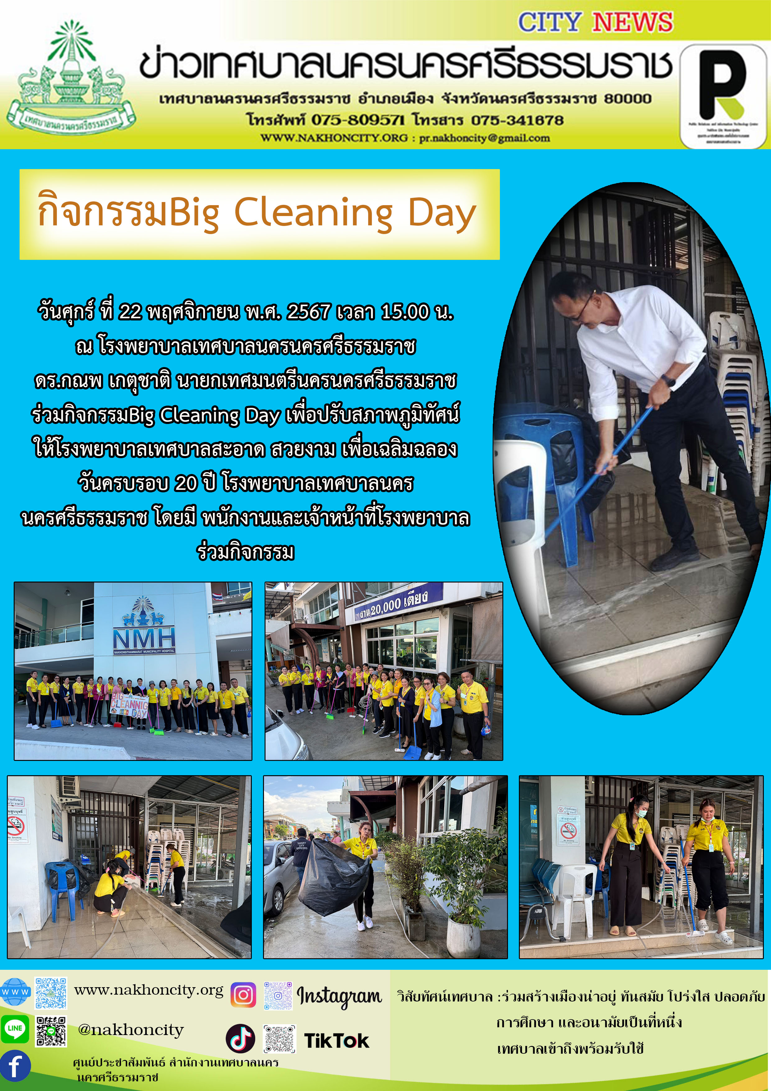 นายกเทศมนตรีนครนครศรีธรรมราช ร่วมกิจกรรมBig Cleaning Day ปรับสภาพภูมิทัศน์ ให้โรงพยาบาลเทศบาลสะอาด สวยงาม เพื่อเฉลิมฉลอง วันครบรอบ 20 ปี โรงพยาบาลเทศบาลนครนครศรีธรรมราช |