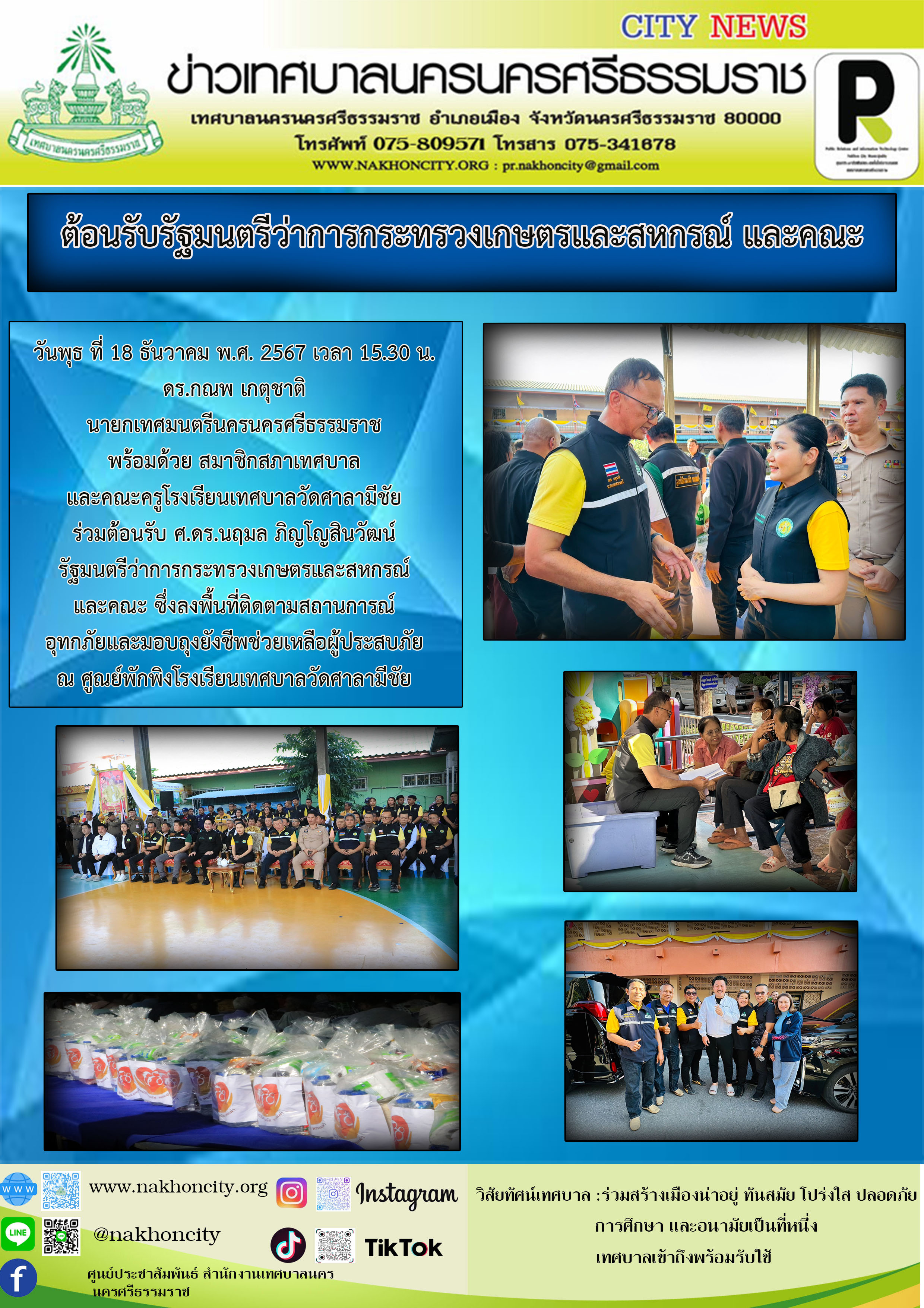นายกเทศมนตรีนครนครศรีธรรมราช พร้อมด้วย สมาชิกสภาเทศบาล และคณะครูโรงเรียนเทศบาลวัดศาลามีชัย ร่วมต้อนรับ ศ.ดร.นฤมล ภิญโญสินวัฒน์ รัฐมนตรีว่าการกระทรวงเกษตรและสหกรณ์ และคณะ |