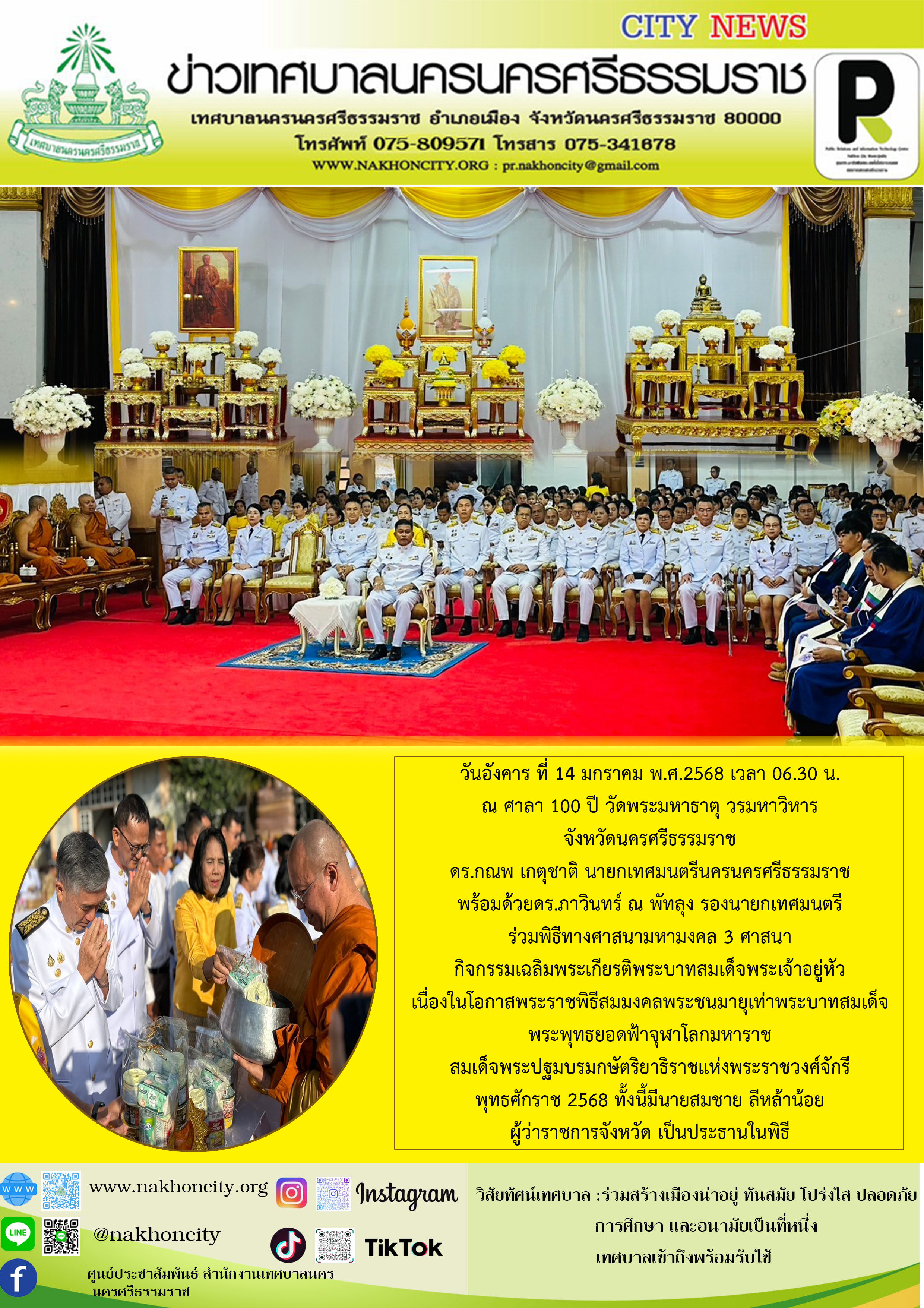 นายกเทศมนตรีนครนครศรีธรรมราช พร้อมด้วย รองนายกเทศมนตรี ร่วมพิธีทางศาสนามหามงคล 3 ศาสนา กิจกรรมเฉลิมพระเกียรติพระบาทสมเด็จพระเจ้าอยู่หัว |