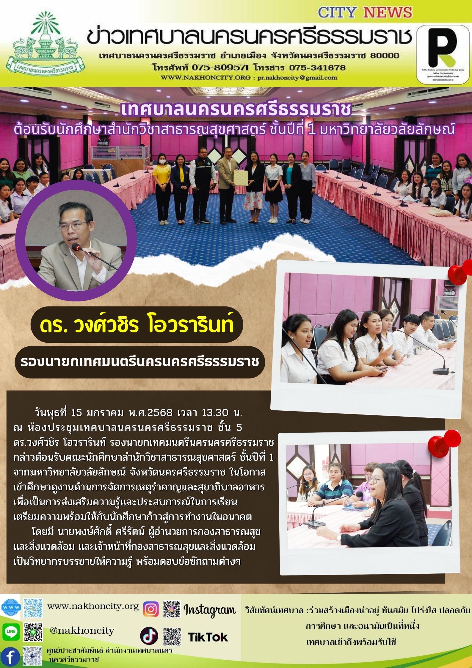 เทศบาลนครนครศรีธรรมราช ต้อนรับ คณะนักศึกษาสำนักวิชาสาธารณสุขศาสตร์ ชั้นปีที่ 1 จากมหาวิทยาลัยวลัยลักษณ์ |