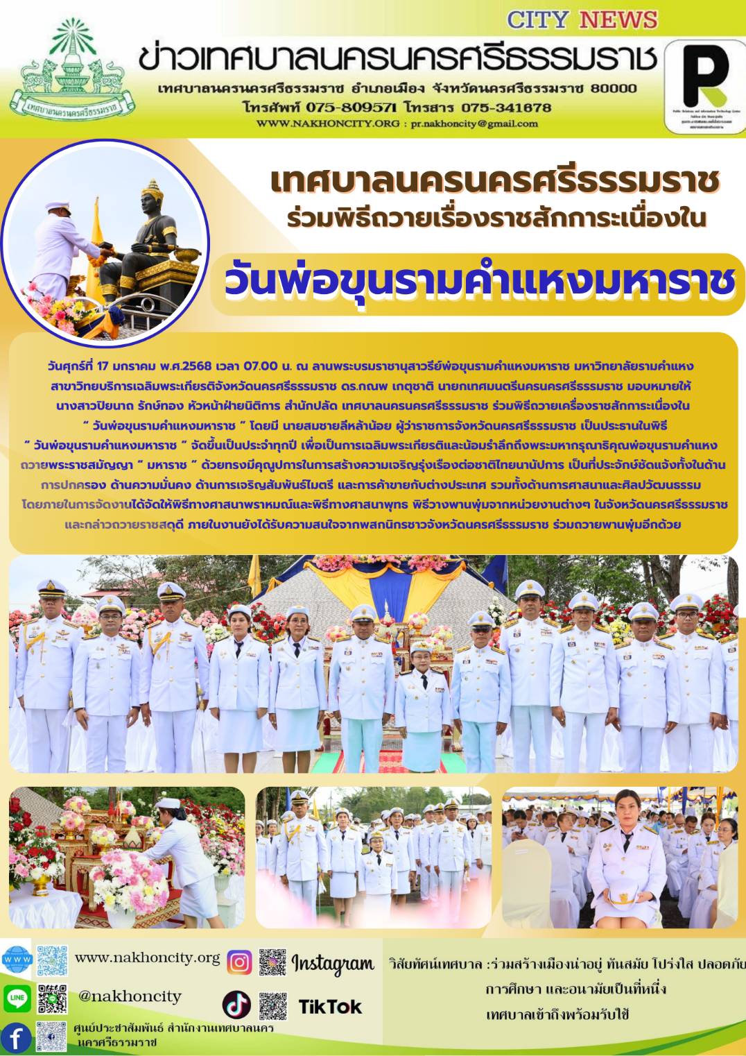 เทศบาลนครนครศรีธรรมราช ร่วมพิธีถวายเครื่องราชสักการะเนื่องใน “ วันพ่อขุนรามคำแหงมหาราช |