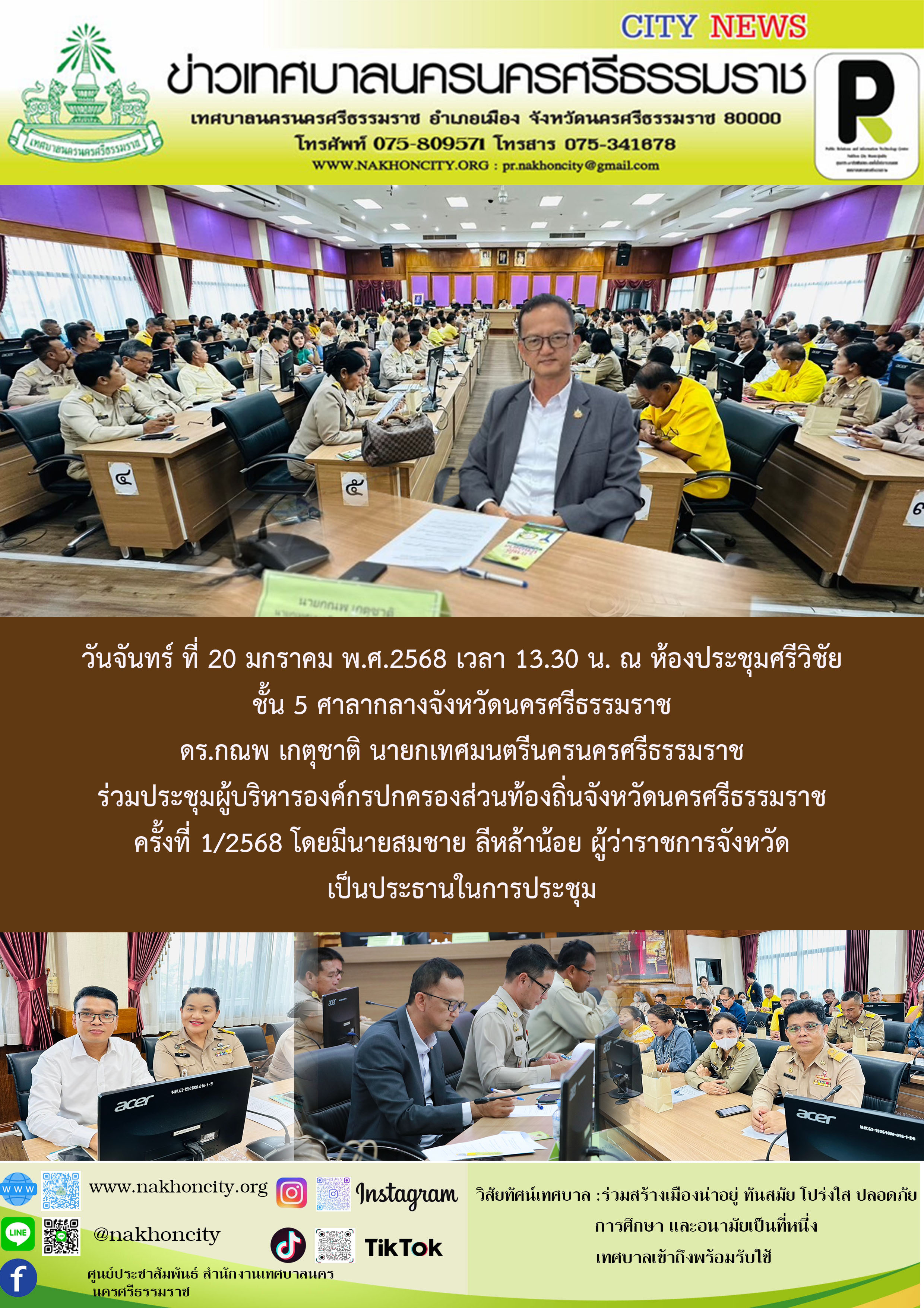 นายกเทศมนตรีนครนครศรีธรรมราช ร่วมประชุมผู้บริหารองค์กรปกครองส่วนท้องถิ่นจังหวัดนครศรีธรรมราช ครั้งที่ 1/2568 |