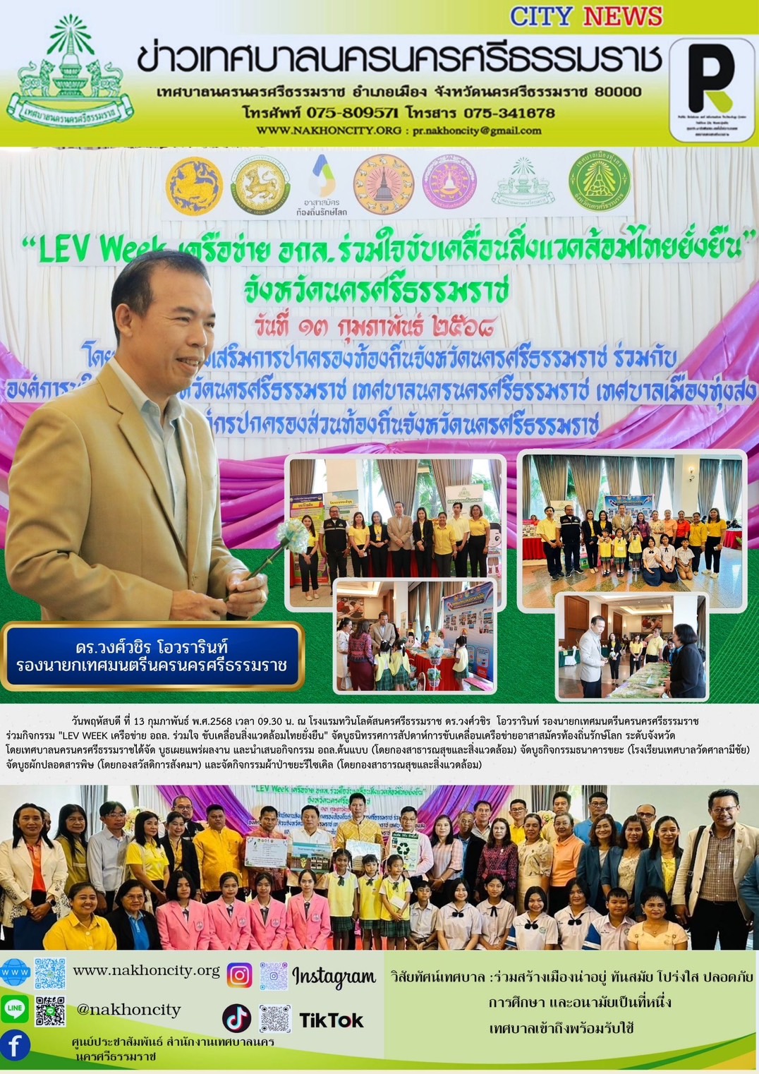 รองนายกเทศมนตรีนครนครศรีธรรมราช ร่วมกิจกรรม "LEV Week เครือข่าย อถล. ร่วมใจ ขับเคลื่อนสิ่งแวดล้อมไทยยั่งยืน" จัดบูธนิทรรศการสัปดาห์การขับเคลื่อนเครือข่ายอาสาสมัครท้องถิ่นรักษ์โลก ระดับจังหวัด |