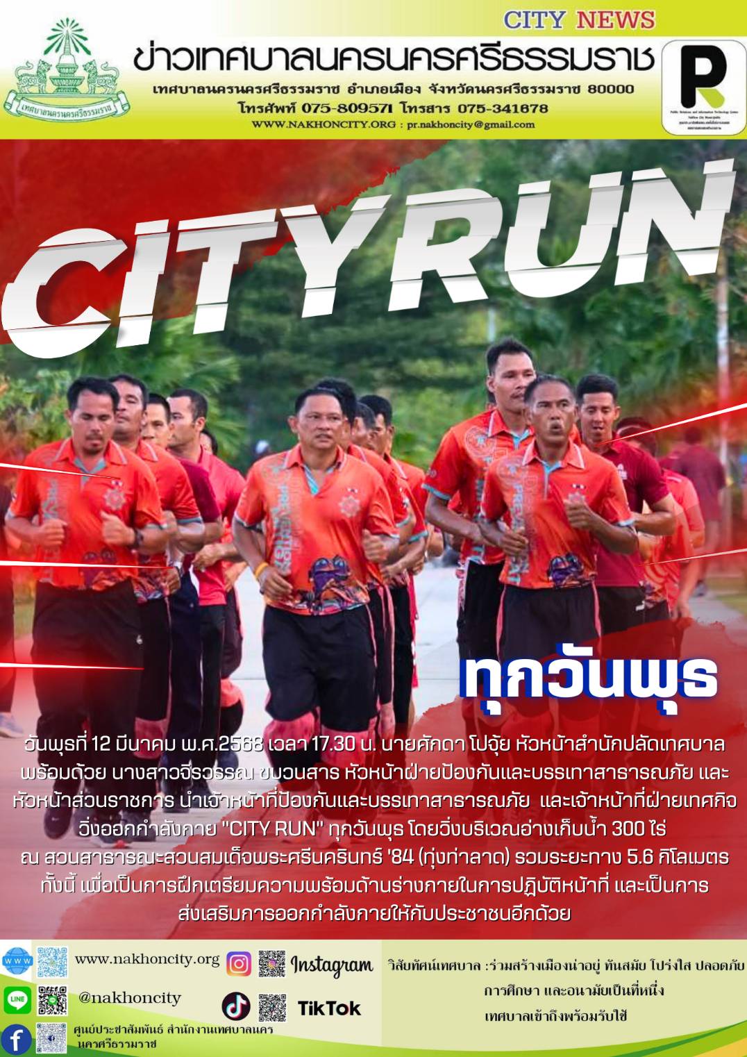 นายศักดา โปจุ้ย หัวหน้าสำนักปลัดเทศบาล นำเจ้าหน้าที่ป้องกันและบรรเทาสาธารณภัย และเจ้าหน้าที่ฝ่ายเทศกิจ วิ่งออกกำลังกาย "CITY RUN" ทุกวันพุธ |