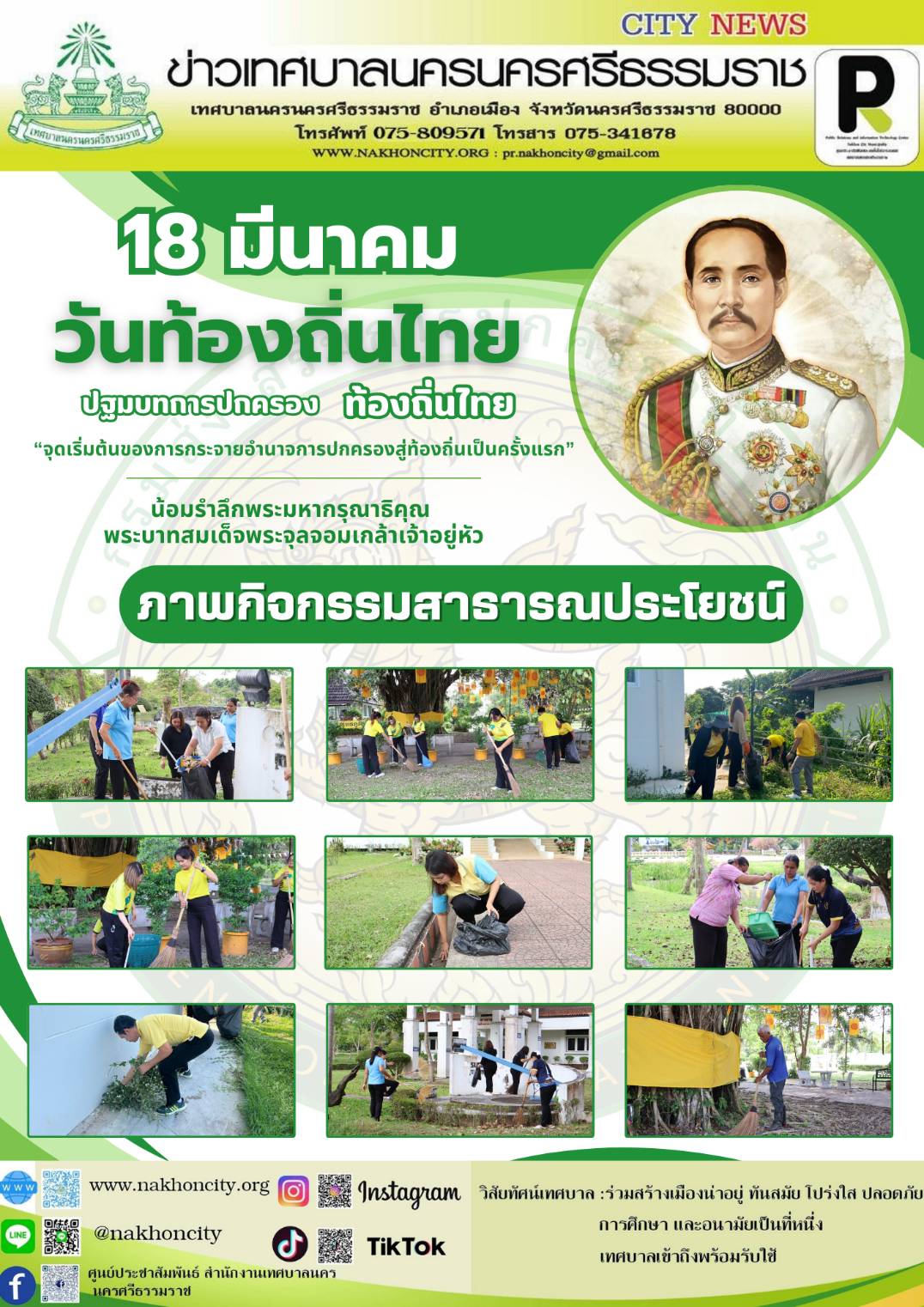 วันอังคารที่ 18 มีนาคม พ.ศ.2568 เทศบาลนครนครศรีธรรมราช จัดกิจกรรมสาธารณประโยชน์ เนื่องในวันท้องถิ่นไทย ประจำปี 2568 ภาพบรรยากาศสาธารณประโยชน์ ณ สวนสมเด็จพระศรีนครินทร์ ’84 (ทุ่งท่าลาด) ............ ภาพ//ข่าว//จันทร์จิรา |