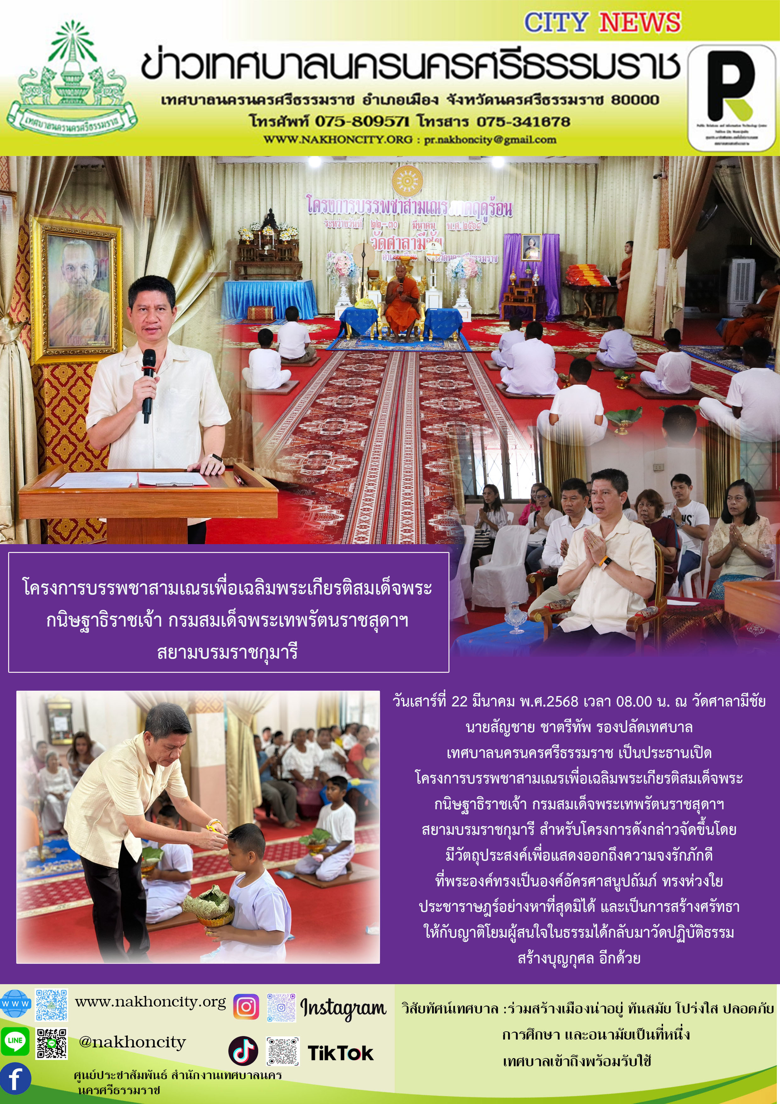 รองปลัดเทศบาล เทศบาลนครนครศรีธรรมราช เป็นประธานเปิดโครงการบรรพชาสามเณรเพื่อเฉลิมพระเกียรติสมเด็จพระกนิษฐาธิราชเจ้า กรมสมเด็จพระเทพรัตนราชสุดาฯ สยามบรมราชกุมารี |