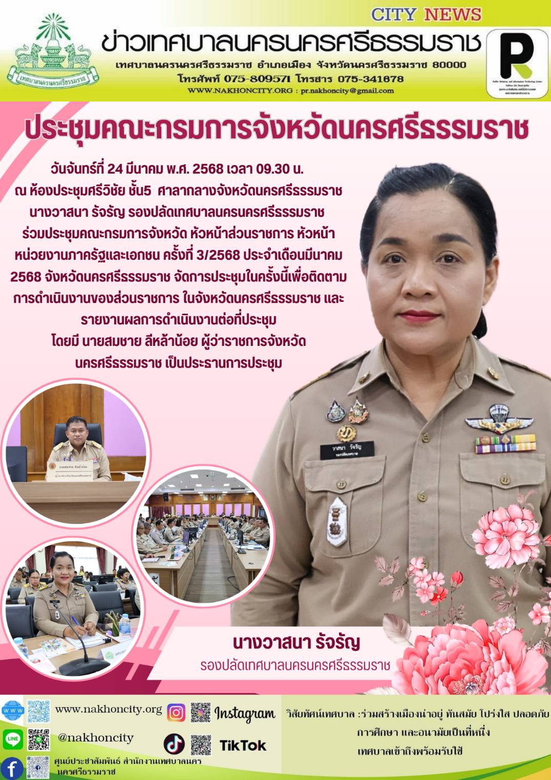 นางวาสนา รัจรัญ รองปลัดเทศบาลนครนครศรีธรรมราช ร่วมประชุมคณะกรมการจังหวัด ประจำเดือนมีนาคม 2568 |