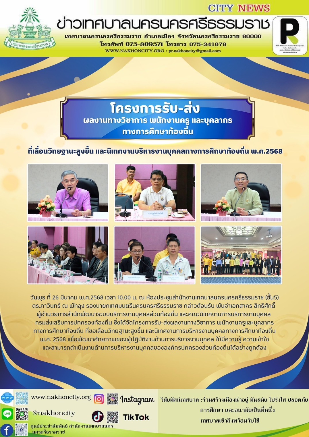วันพุธ ที่ 26 มีนาคม พ.ศ.2568 เวลา 10.00 น. ณ ห้องประชุมสำนักงานเทศบาลนครนครศรีธรรมราช (ชั้น5) ภาพ//ข่าว//ไกรสิทธิ//เจนจิรา//ปัญชนา(นักศึกษาฝึกงาน) |
