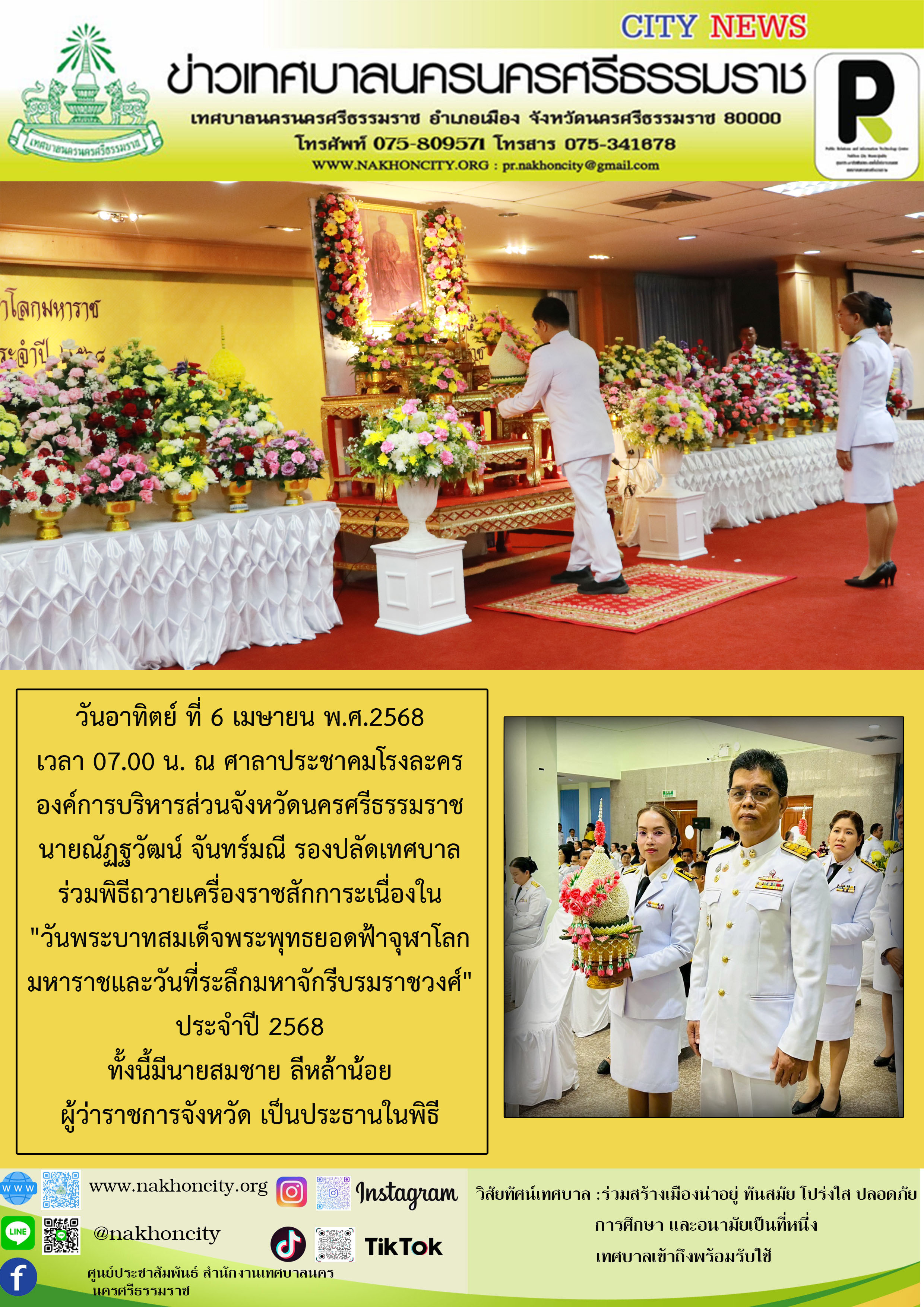 วันอาทิตย์ ที่ 6 เมษายน พ.ศ.2568 เวลา 07.00 น. ณ ศาลาประชาคมโรงละคร องค์การบริหารส่วนจังหวัดนครศรีธรรมราช