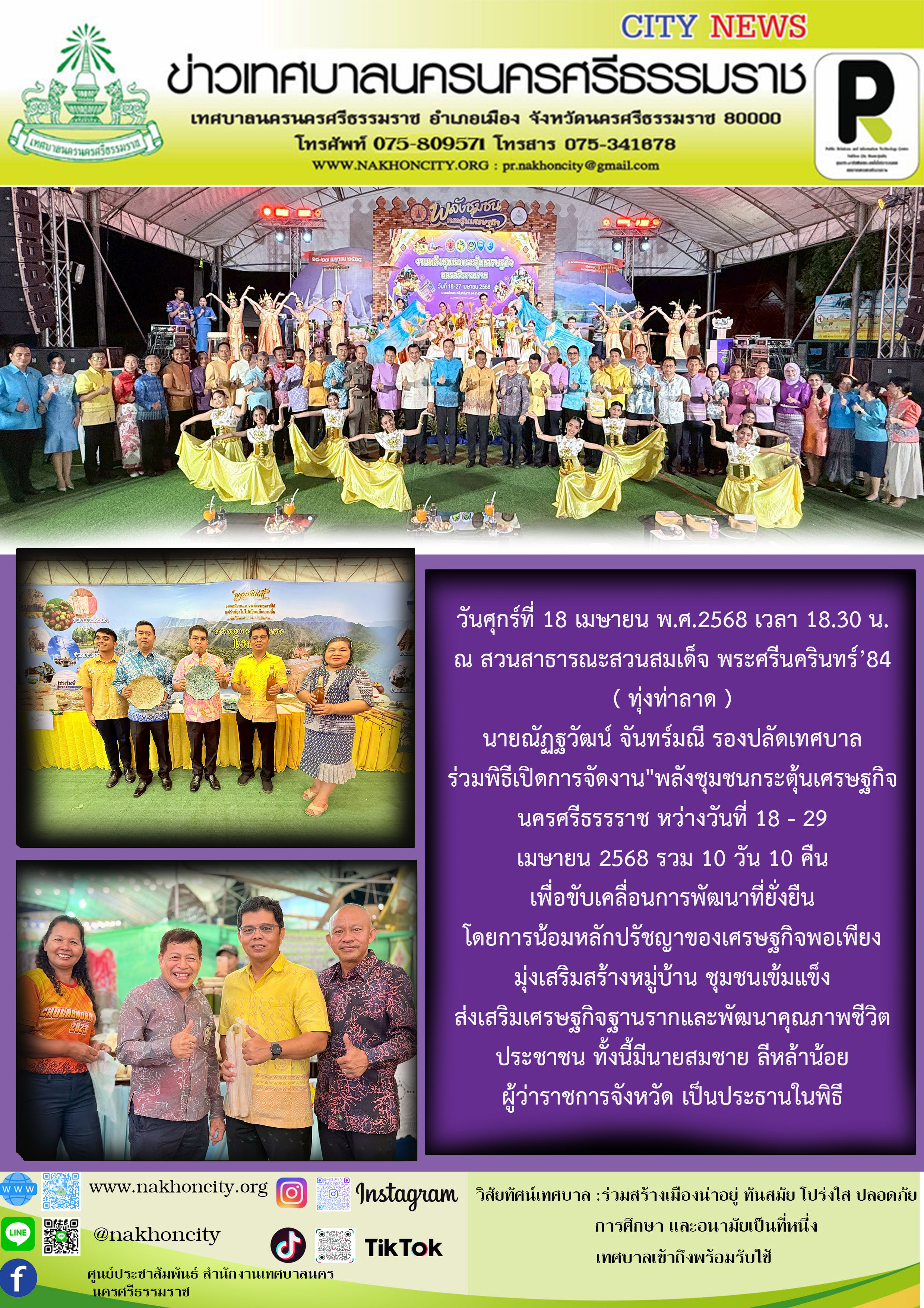 รองปลัดเทศบาล ร่วมพิธีเปิดการจัดงาน"พลังชุมชนกระตุ้นเศรษฐกิจนครศรีธรรราช หว่างวันที่ 18 - 29 เมษายน 2568 รวม 10 วัน 10 คืน |