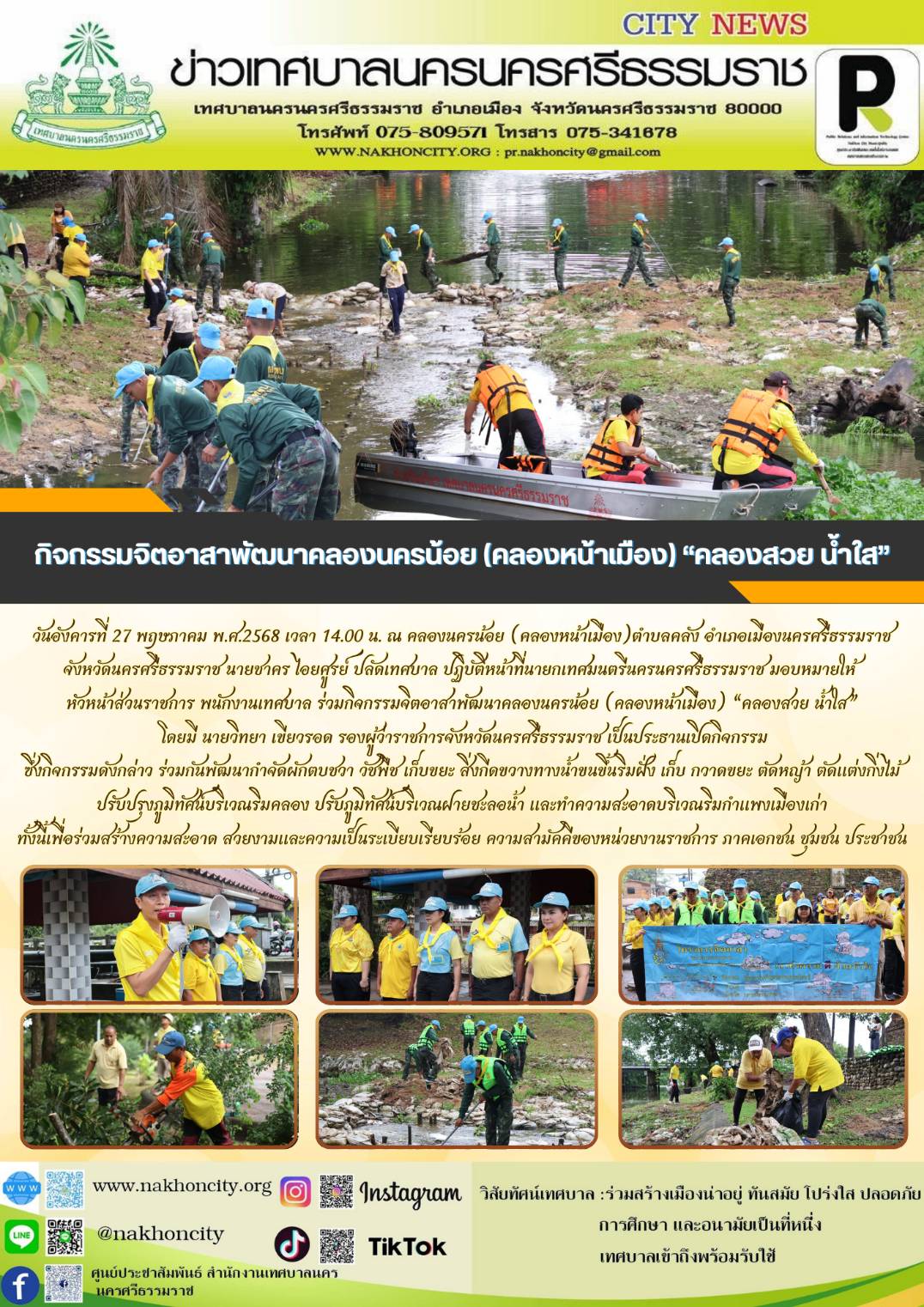เทศบาลนครนครศรีธรรมราช ร่วมกิจกรรมจิตอาสาพัฒนาคลองนครน้อย (คลองหน้าเมือง) “คลองสวย น้ำใส” |