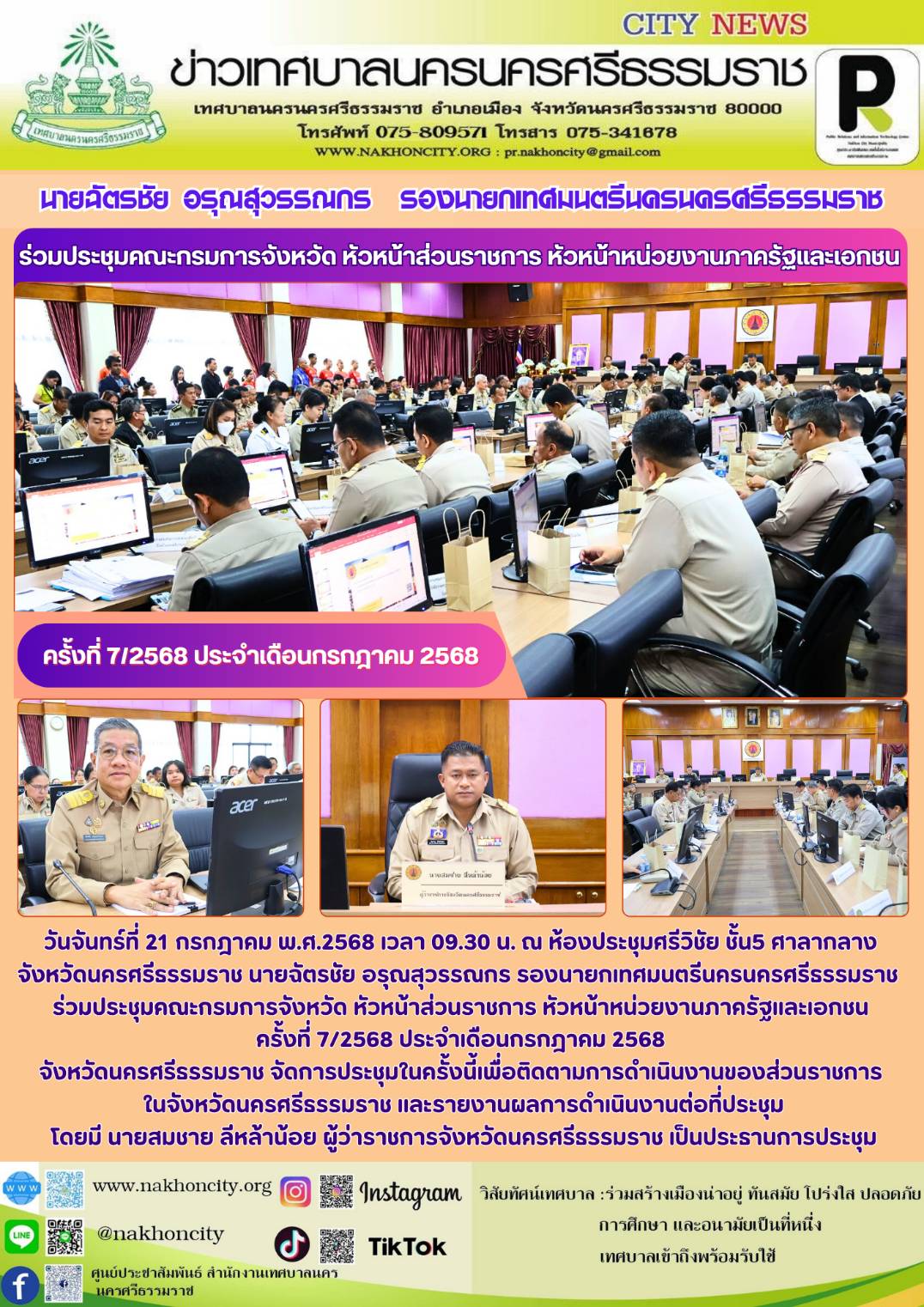 นายฉัตรชัย อรุณสุวรรณกร รองนายกเทศมนตรีนครนครศรีธรรมราช ร่วมประชุมคณะกรรมการจังหวัด หัวหน้าส่วนราชการ หัวหน้าหน่วยงานภาครัฐและเอกชน ครั้งที่ 7/2568 ประจำเดือนกรกฎาคม 2568 |