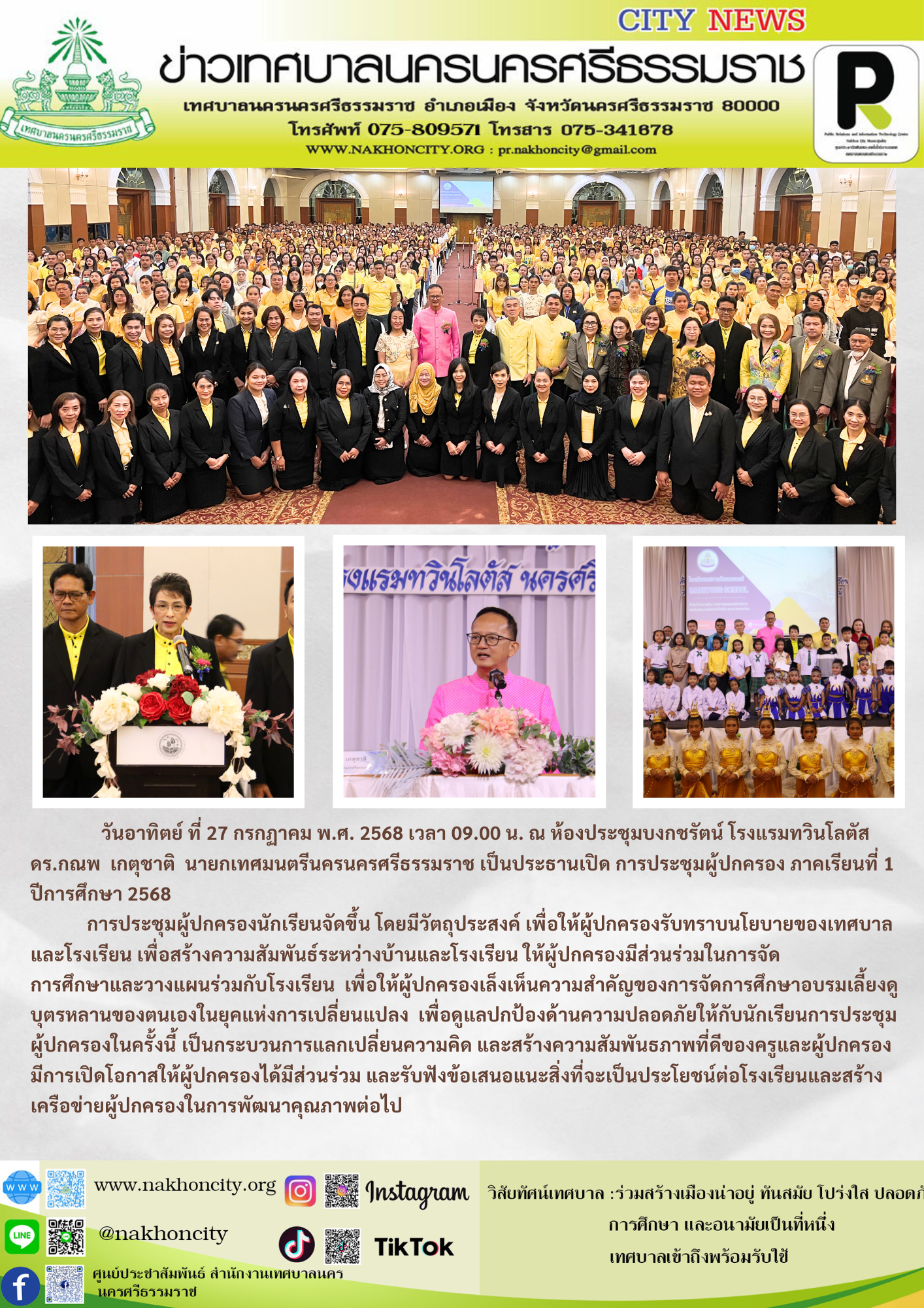 ดร.กณพ เกตุชาติ นายกเทศมนตรีนครนครศรีธรรมราช เป็นประธานเปิด การประชุมผู้ปกครอง ภาคเรียนที่ 1 ปีการศึกษา 2568 |