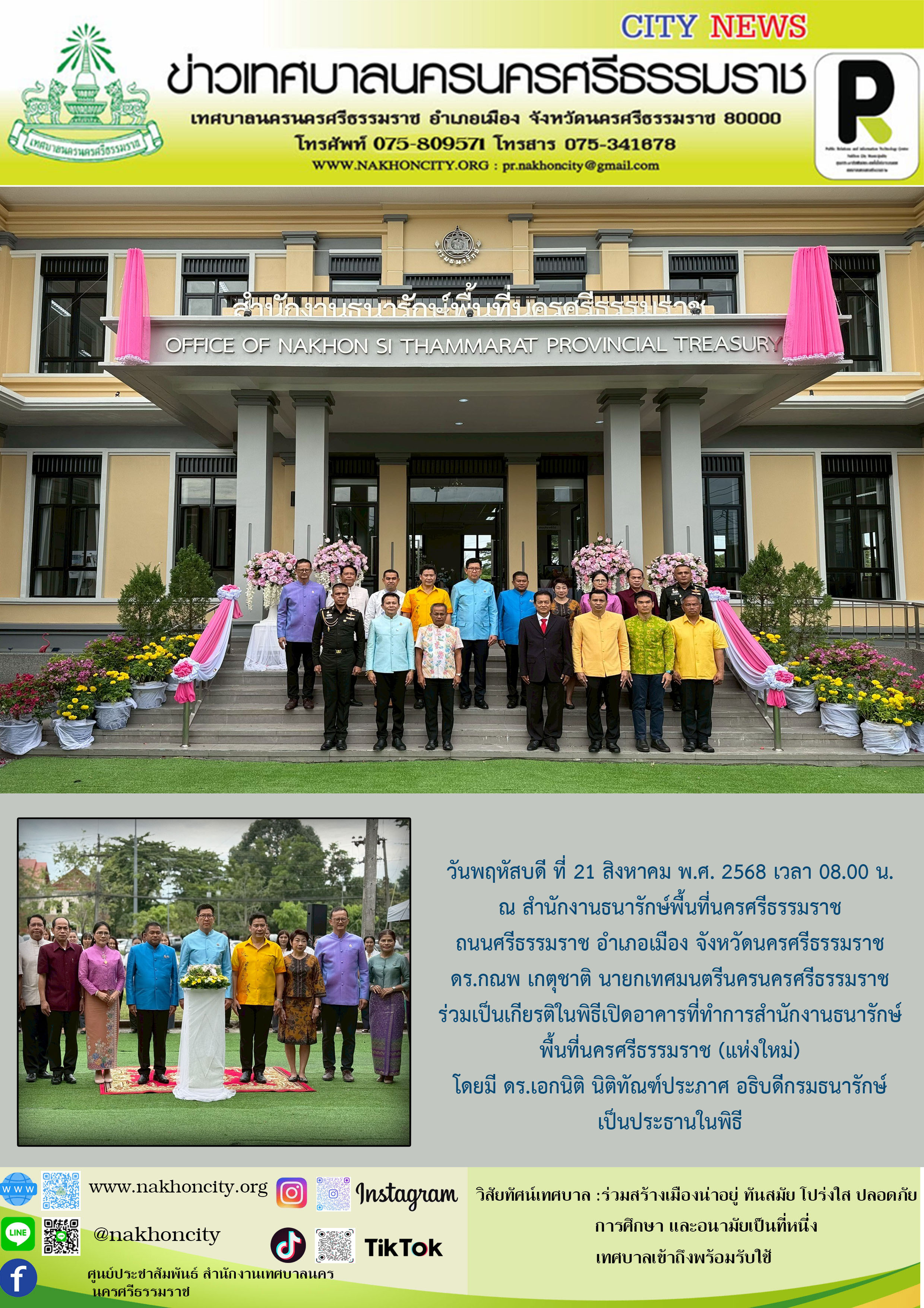 นายกเทศมนตรีนครนครศรีธรรมราช ร่วมเป็นเกียรติในพิธีเปิดอาคารที่ทำการสำนักงานธนารักษ์พื้นที่นครศรีธรรมราช (แห่งใหม่) |