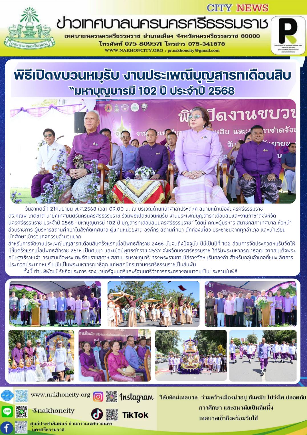 ดร.กณพ เกตุชาติ นายกเทศมนตรีนครนครศรีธรรมราช ร่วมพิธีเปิดขบวนหมฺรับ งานประเพณีบุญสารทเดือนสิบและงานกาชาดจังหวัดนครศรีธรรมราช ประจำปี 2568 |