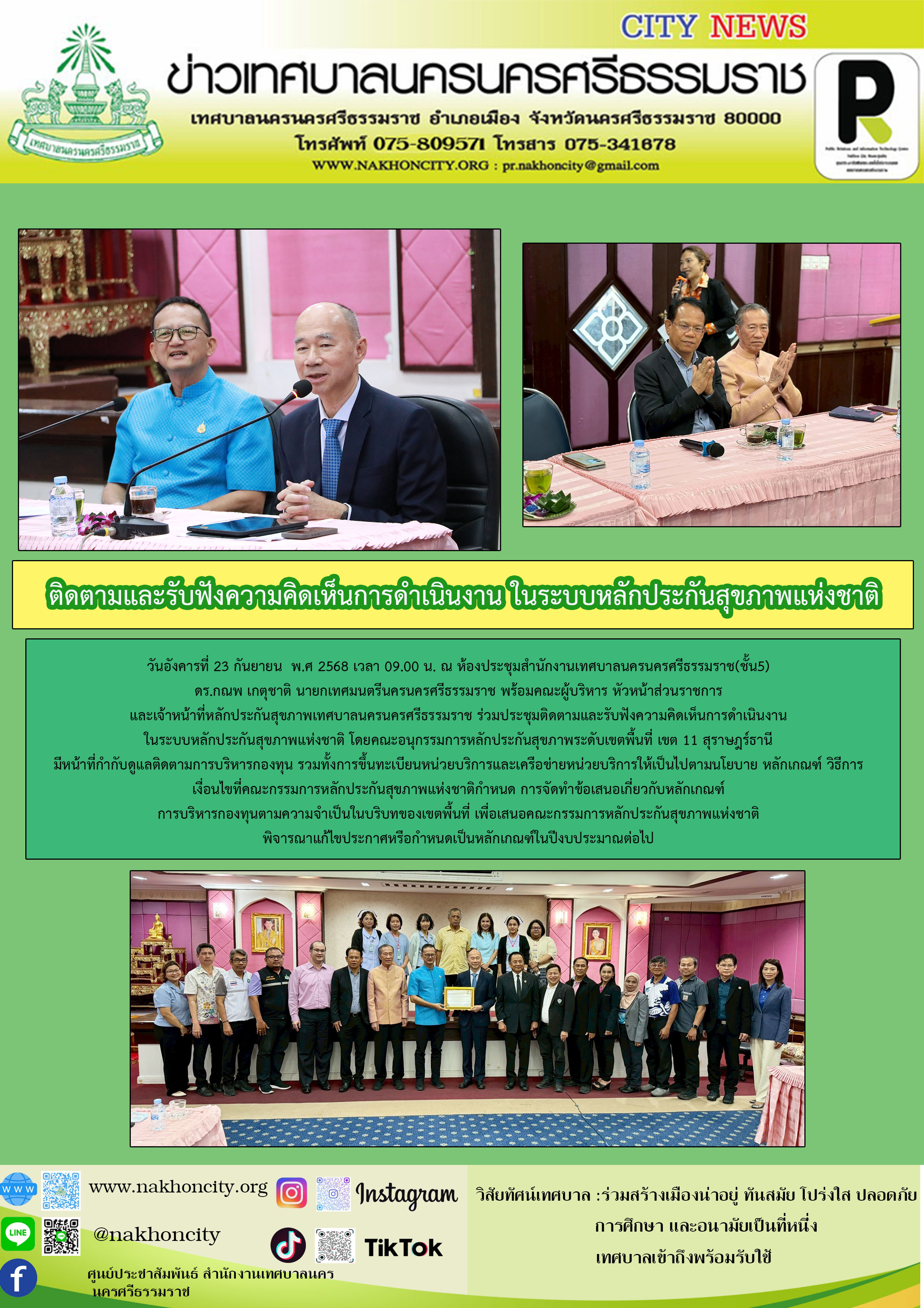 วันอังคารที่ 23 กันยายน พ.ศ 2568 เวลา 09.00 น. ณ ห้องประชุมสำนักงานเทศบาลนครนครศรีธรรมราช(ชั้น5)