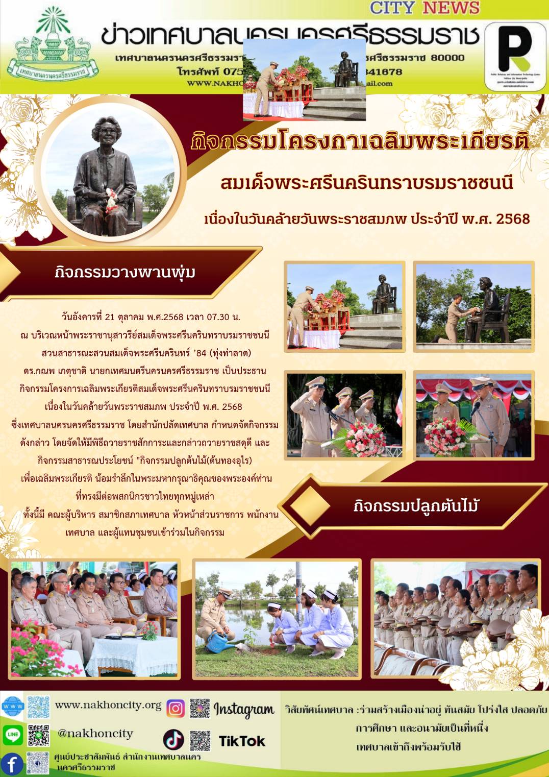 ดร.กณพ เกตุชาติ นายกเทศมนตรีนครนครศรีธรรมราช เป็นประธานกิจกรรมโครงการเฉลิมพระเกียรติสมเด็จพระศรีนครินทราบรมราชชนนี เนื่องในวันคล้ายวันพระราชสมภพ ประจำปี พ.ศ. 2568 |